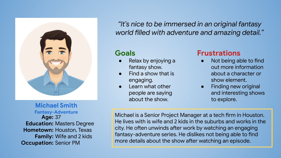 Below you will find my user persona and user journey map for my fantasy art gallery project: